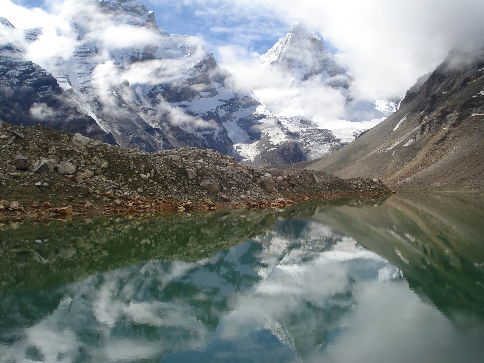 Gangotri is a small village, located at an altitude of 3100 m (10170 ft) in the Greater Himalayan Range on the Bhagirati River banks. Gangotri Temple is an important pilgrimage site and one of the char dham (four ancient temples that mark the spiritual sources of four sacred rivers the Yamuna, the Ganges, the Mandakini and the Alaknanda). Gangotri Glacier is the primary source of the Ganges and it is one of the largest in the Himalayas. Hindus consider bathing in the icy waters to be a holy ritual. Gangotri Glacier is located 19 km from the town.