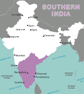 South India region is bounded by the Arabian Sea in the west, the Indian Ocean in the south and the Bay of Bengal in the east.